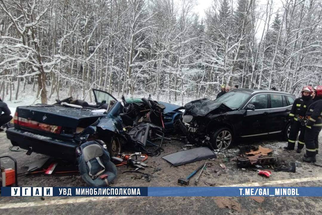 Паводле папярэдняй інфармацыі, 33-гадовы мясцовы жыхар, кіруючы аўтамабілем БМВ 518i, рухаўся ў кірунку аграгарадка Юзуфова, выехаў на паласу сустрэчнага руху, дзе “здзейсніў сутыкненне з аўтамабілем БМВ X3, які рухаўся ў сустрэчным кірунку, пад кіраваннем 62-гадовага мінчука”.