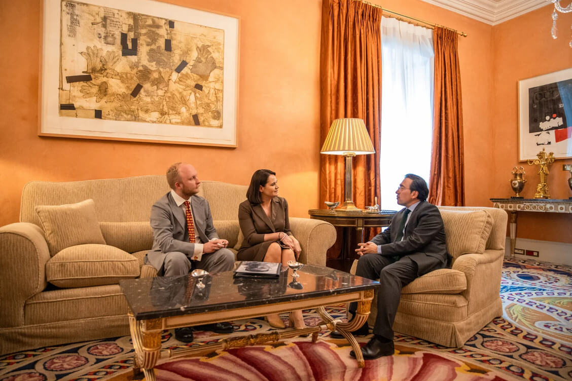 Дэмлідар падзякавала міністру за ўклад у памеры 50 тыс. еўра ў міжнародны гуманітарны фонд, пры гэтым на сустрэчы быў узгоднены другі ўклад.