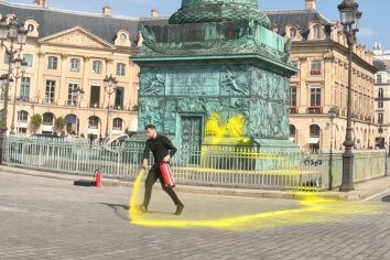 After his release, he painted testicles beneath the Colonne Vendôme in Paris in September, describing the work as “Conception.” He was arrested two days later and charged with vandalizing a French architectural monument.
