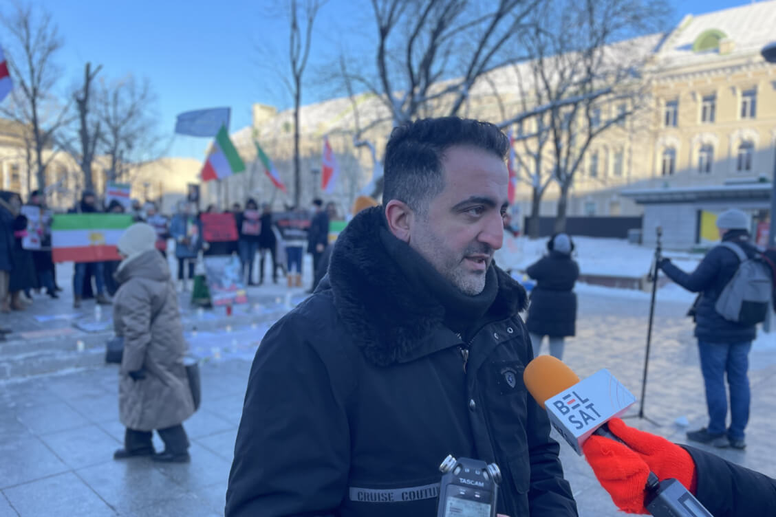 Один из организаторов мероприятия, живущий девять лет в Литве иранец Беньямин Дарами, рассказал журналистам, что цель акции заключается в том, чтобы “стать голосом иранцев, голосом неуслышанных людей, которые рискуют своей жизнью, свободой, телами, семьями — всем, выходя на улицы и борясь с общим для всех врагом — врагом США, Европы, белорусского народа, Украины, всего Ближнего Востока“.