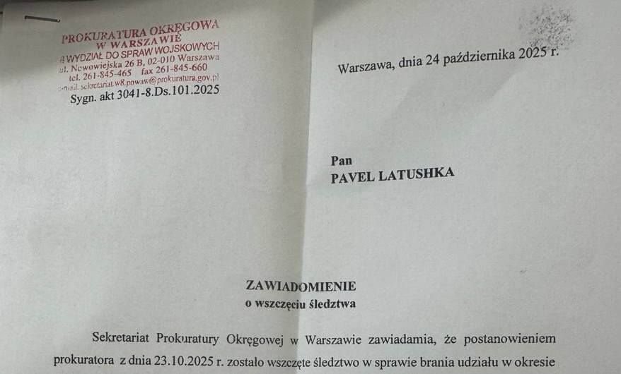 Письмо из Окружной прокуратуры Варшавы Павлу Латушко