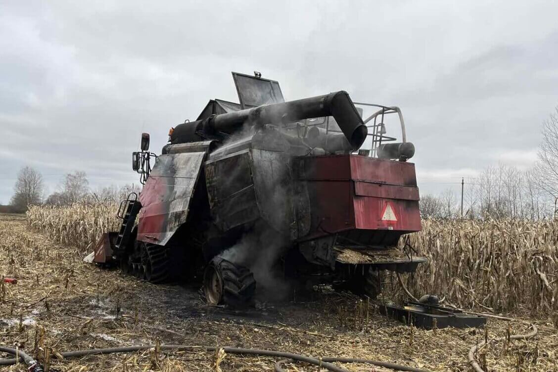 В Ельском районе (Гомельская область) во время уборки кукурузы 28 ноября загорелся зерноуборочный комбайн — огнем повреждены колесо, моторный отсек и лакокрасочное покрытие сельхозмашины.