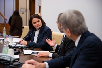 Тихановская в этом контексте заявила о необходимости диалога с представителями правящего режима: “Подчеркиваю, не с Лукашенко, а с людьми системы. Нам нужно освобождать страну от диктатуры и от российского ига. Поэтому сейчас у американцев такая стратегия: сначала освободить людей, потом вместе приступаем к следующим шагам по демократизации, по верховенству права в Беларуси“.